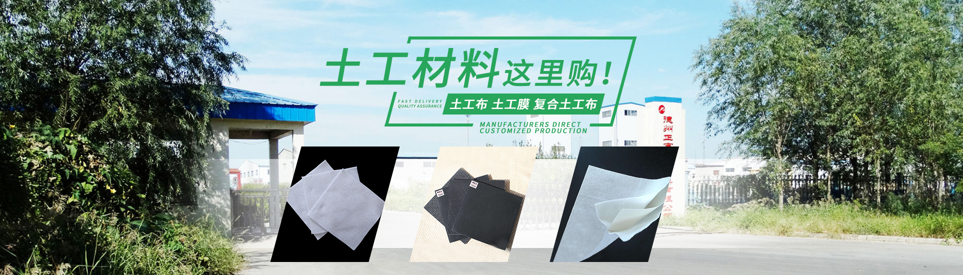 公司要生產各種類型和規格的土工布、塑料編織布、聚丙烯針刺非織造布、HDPE土工膜、復合土工膜、高強格室、高強土工格柵、隧道防水板、土工網、膨潤土防水毯、復合排水網、橡膠止水材料、防排水組合材料,形成了防滲、環保、防護、加固、止水四大材料體系、一體化供應。